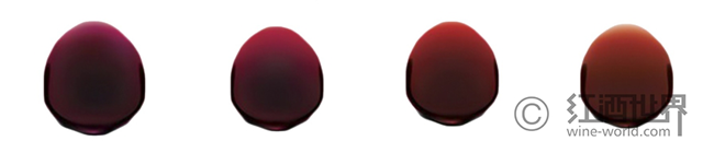 葡萄酒陳年時或多或少都會經歷一個緩慢氧化的過程,葡萄酒顏色變化便是這一化學反應最直接的表現。對于紅葡萄酒來說,其顏色主要來源于果皮上的色素。隨著時間推移,這些色素在氧氣的作用下,與單寧聚合,形成聚合鏈,從而減少了零散分布在酒液中的色素,紅葡萄酒的顏色也就隨之變淺,若陳年時間足夠長,甚至會演變成棕色或茶色。