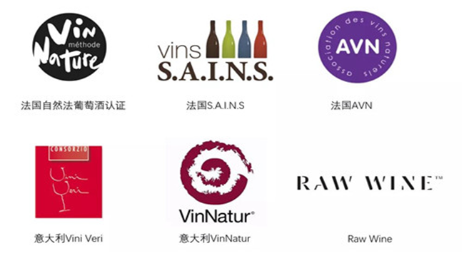 除左上角法國自然法葡萄酒認(rèn)證標(biāo)識(shí)為官方認(rèn)證外,其余均為自然酒聯(lián)盟組織